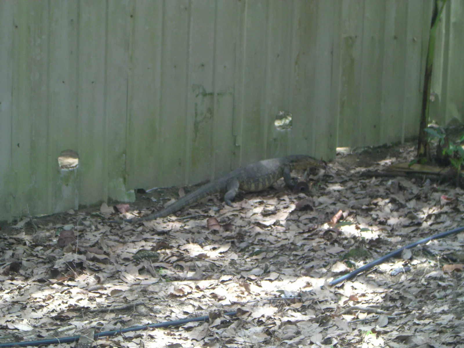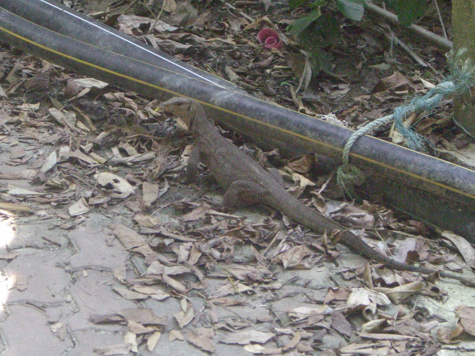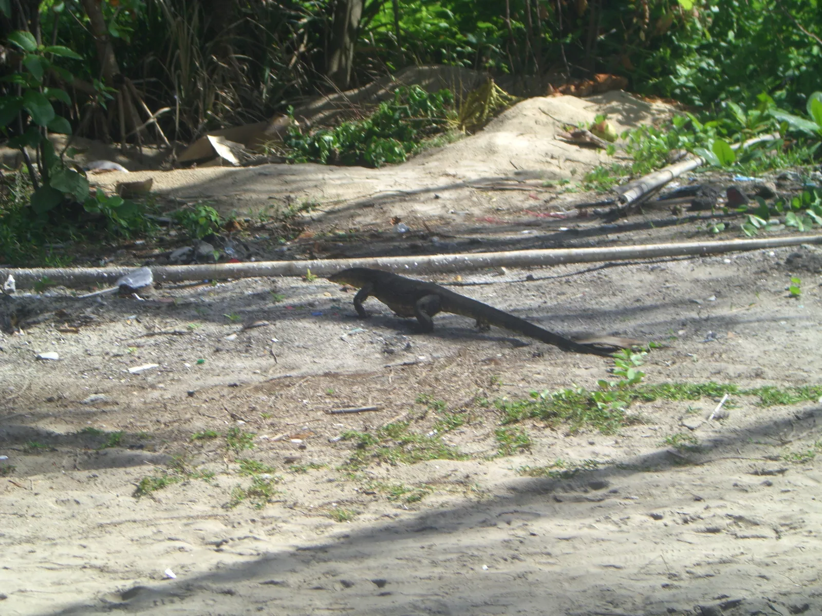 y como no, siguiendo con mi mala suerte, ya venía la cámara y la tarjeta de memoria dando problemas desde hace un par de días y cuando he cruzado para el otro lad,o he visto a mi amigo lagartón y cuando he ido a sacar foto, la cámara no se encendía y después de un rato, error de memoria, diossssss qué asco de tecnología, hasta en la puta playa o la selva es necesaria, en fin, pero me conformo cuando he ido a desayunar sí que he visto un lagartín grande, a este si que le he pillado en foto, ahí está, camuflado entre las hojas, listo pa comerte