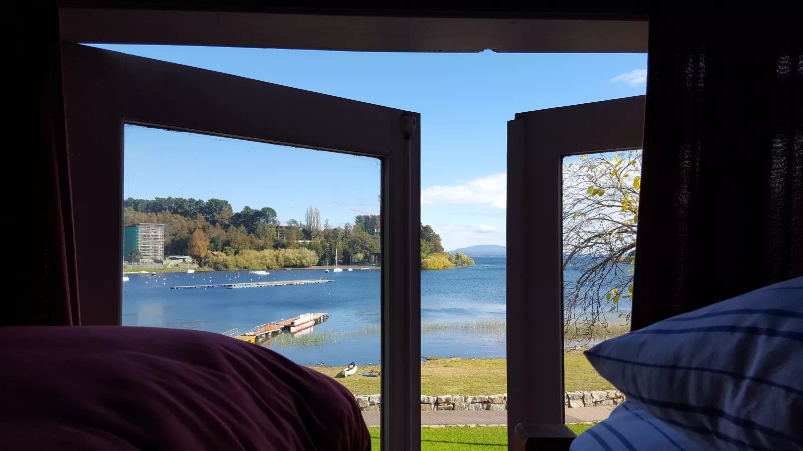 Joeeee que flipe cuando he salido del hostel a cenar algo y he visto frente al lago un atardecer muy… naranja, lástima de cámara y de Sara, que no sé dónde está