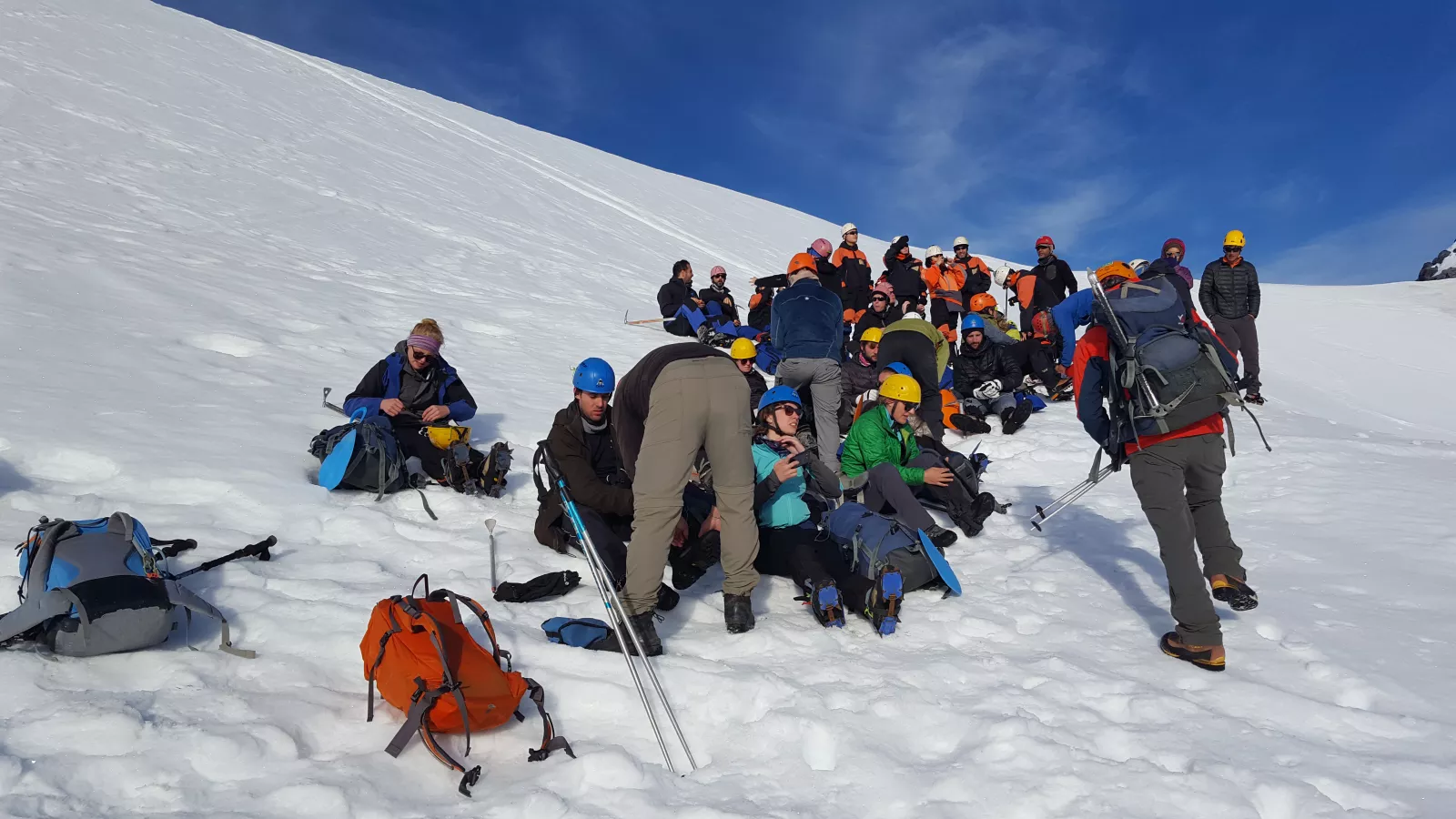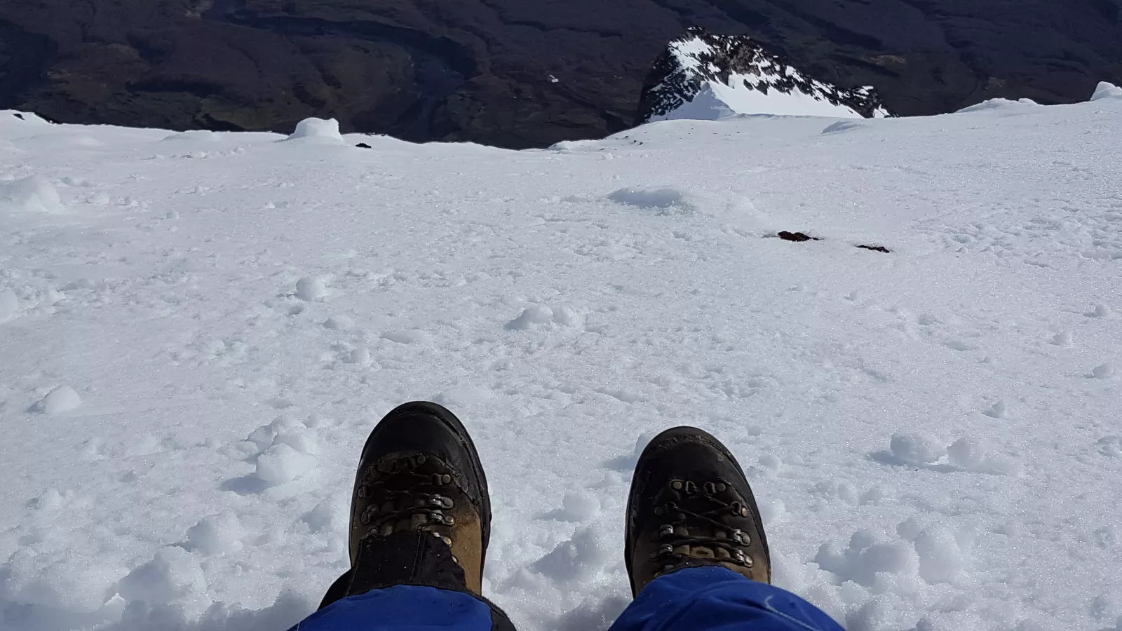 Bueno, ya con los crampones, sin aliento, sin aire, sin alma, sin una gota de fuerza porque de verdad que lo he dado todo, estoy vacío y después de todo, ya sí que mi cuerpo ha dicho basta, hasta aquí y aquí me he quedado, a mitad del tercer punto y la cumbre, a nada de llegar, unos 45 min según el guía, si ahí se ve el final y no puedo, qué impotencia, en la vida, creo... como me ponga a repasar... algo encuentro seguro