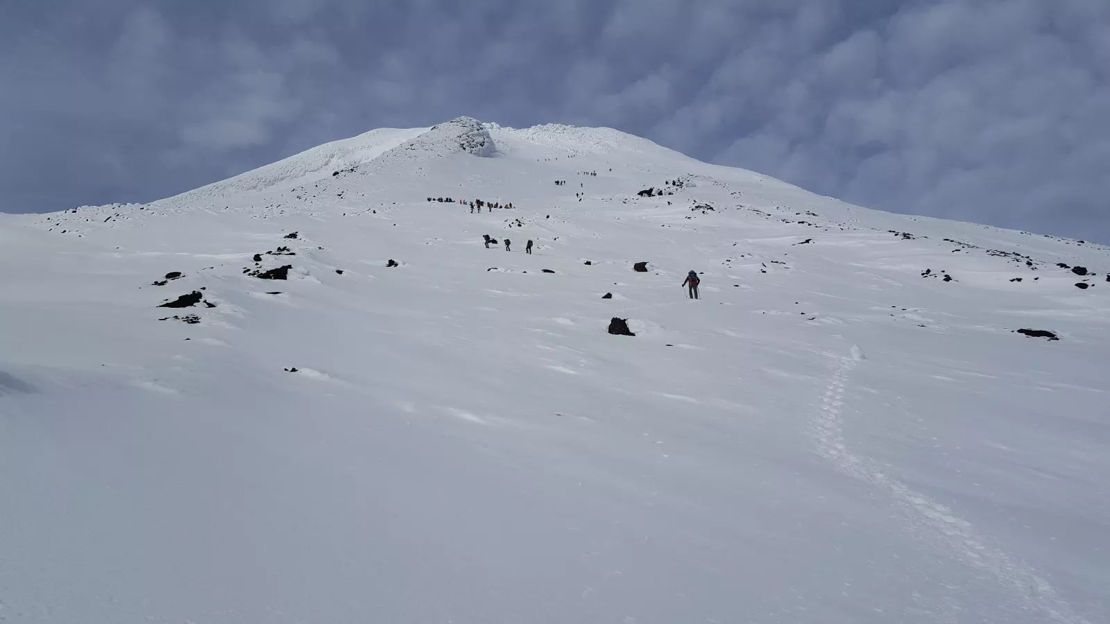 También me da mucha rabia e impotencia ver cómo van pasando el resto de grupos que llevan un ritmo muy muy inferior al nuestro, de hecho se lo he dicho al guía, que por qué no me puedo unir a otro grupo que seguro a su ritmo llego, pero que no, son otras agencias, él tiene que quedarse conmigo y mala suerte que mi grupo haya tirado el más rápido del día, hora límite las 13 para empezar a bajar, lo dicta la encaf o algo así, organismo oficial que regula las montañas, volcanes y sobre todo, la seguridad, no es justo, no, no lo es, más rabia todavía, ya nunca sabré si a otro ritmo habría conseguido coronar la cima, pero también sé que hoy no era el día, con sufrimiento se llega… bueno, lo dejó aquí, no me lleva a ningún lado seguir así.