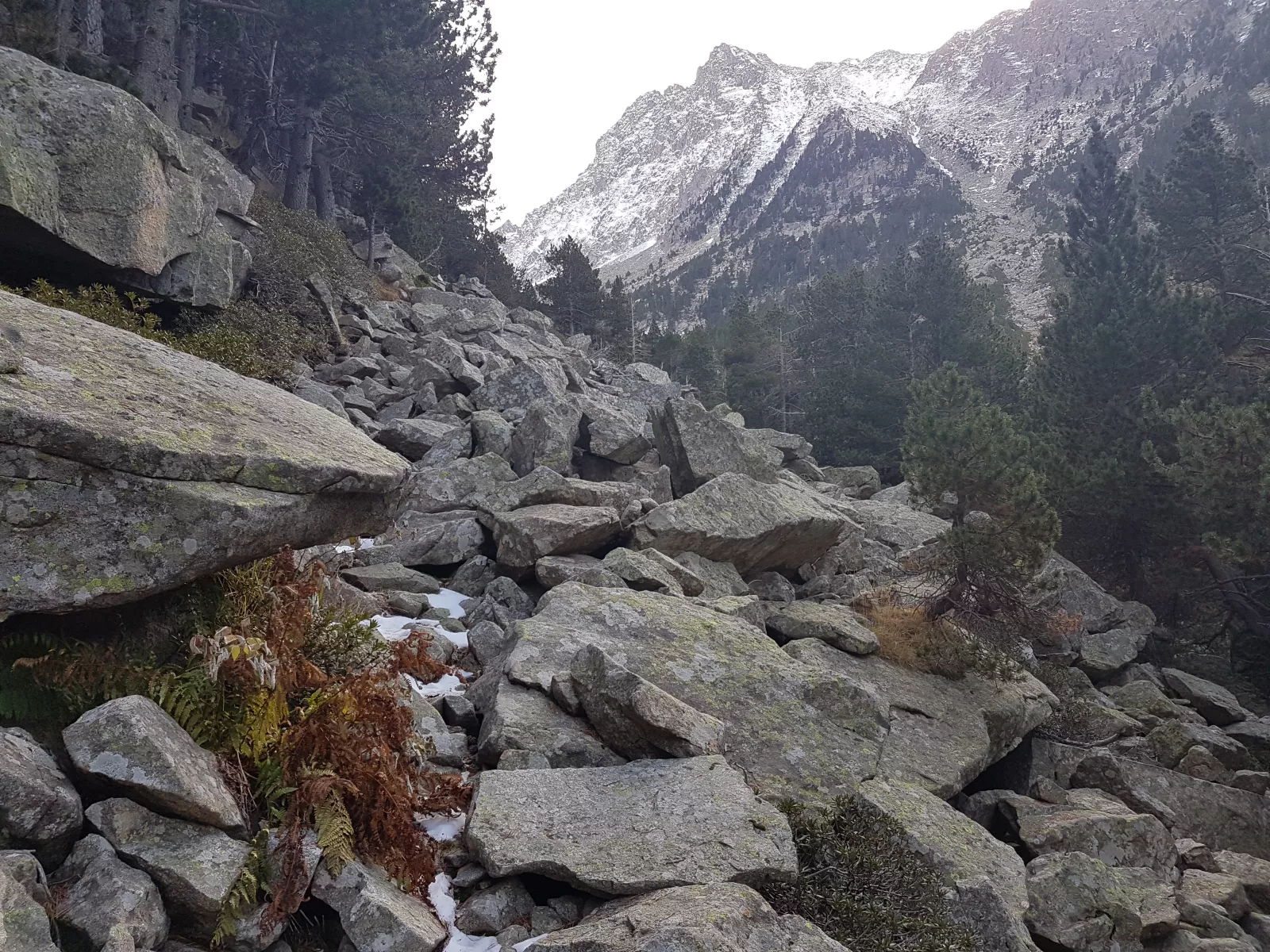 después de 3 horas, cuando sólo me queda la última parte, una media hora, ya solo hay piedras con nieve y con hielo, mal, mal, mis zapas nuevas de 60 euros que estreno hoy, no agarran bien, vamos, no agarran nada, ni en el pueblo, que ya notaba que resbalo en cualquier lado, no entiendo que me pasa con los resbalones, no sé andar, de hecho creo que había que venir mejor preparado, con crampones de esos para el hielo, era chungo seguir, y con sensatez, creo que es la primera vez tanto que escribo esa palabra como que la uso, decido dar media vuelta porque veía venir el desastre