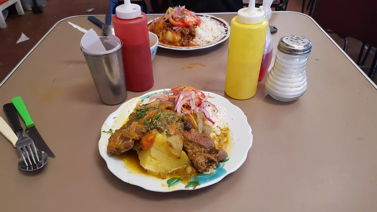 Luego hemos ido en busca de algún restaurante y hemos comido no tan ricamente como los días de atrás pero bueno, hemos comido uno de los platos típicos que nos quedaba por probar y no sabemos si es que le faltaba tomate y no lo puso o qué… porque las fotos que veíamos de ese plato era distinto al servido.