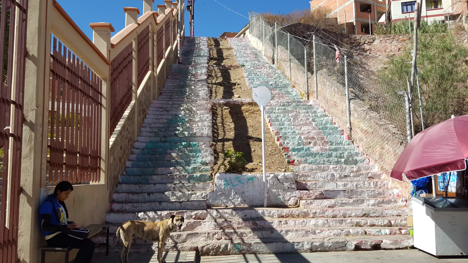 Bueno, empezamos yendo al mirador de… de… no puede ser que se me olvide todo o sí, pero antes nos acercamos a ver dos escaleras de estas que tiran parriba que asustan, ambas chulas, pero que ni subir, ni una
