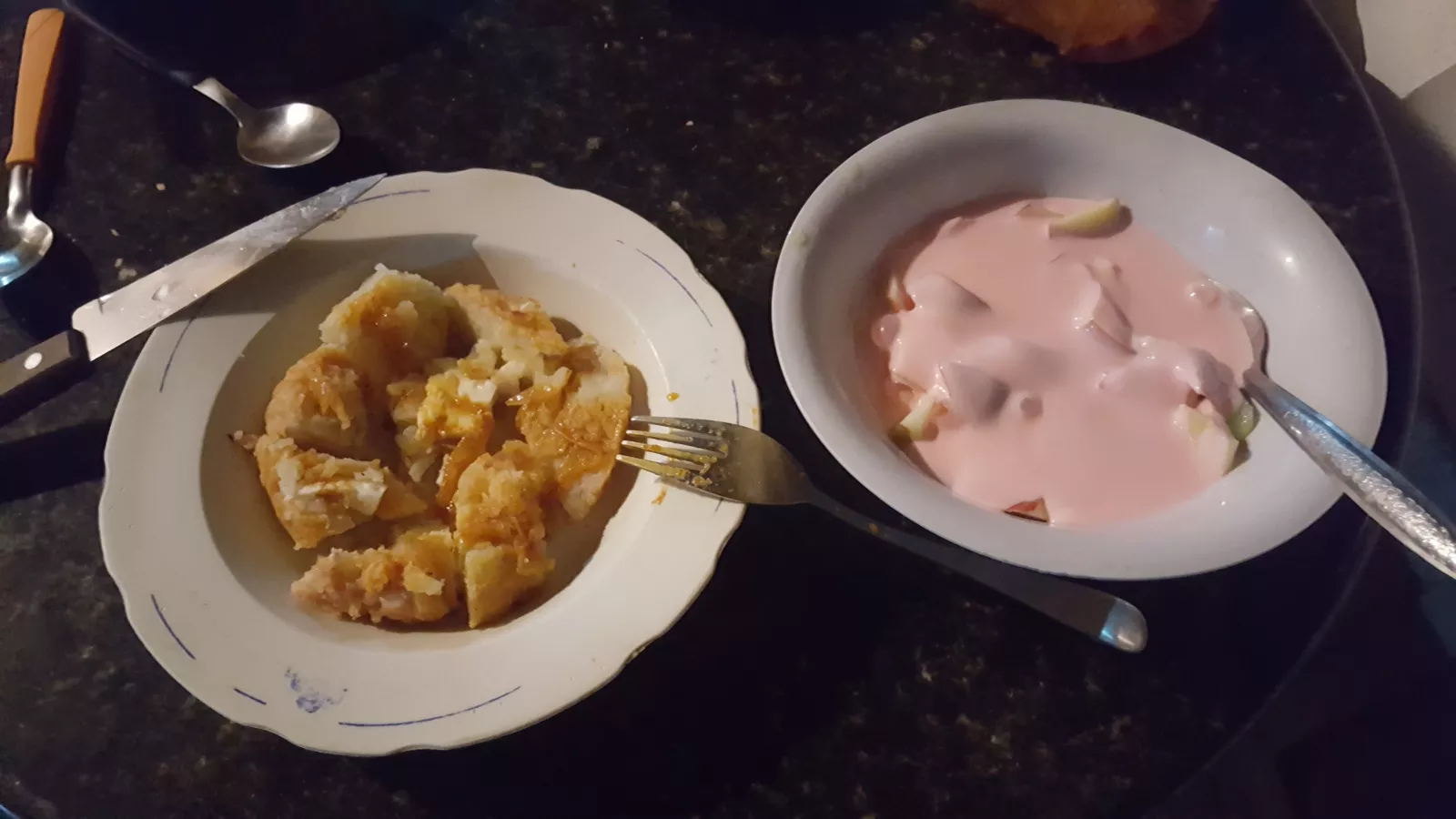 y el postre para comer todo junto en casita, una manzana, kiwi y yogurt para ensalada de frutas, madre mía, como me está cuidando.