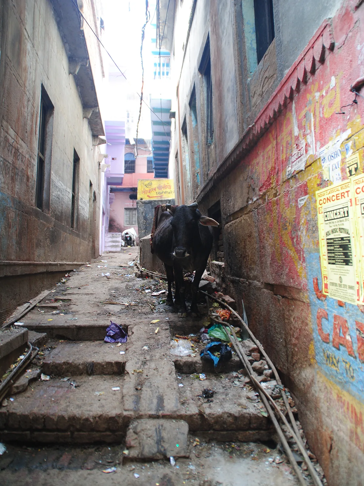 bueno, después de esta parafernalia, si lo lee un hindú me mata!, damos vueltas por la ciudad, es todo muy laberíntico, mil calles de apenas uno o dos metros de ancho llenas de mierda, basura, tiendecillas, vacas, por supuesto y casas que yo qué sé cómo describirlas, el olor es insoportable y me da asco, lo siento, pero es así, pero cómo puede vivir la gente así toda su vida? no lo entiendo, me falta karma o algo, mejor