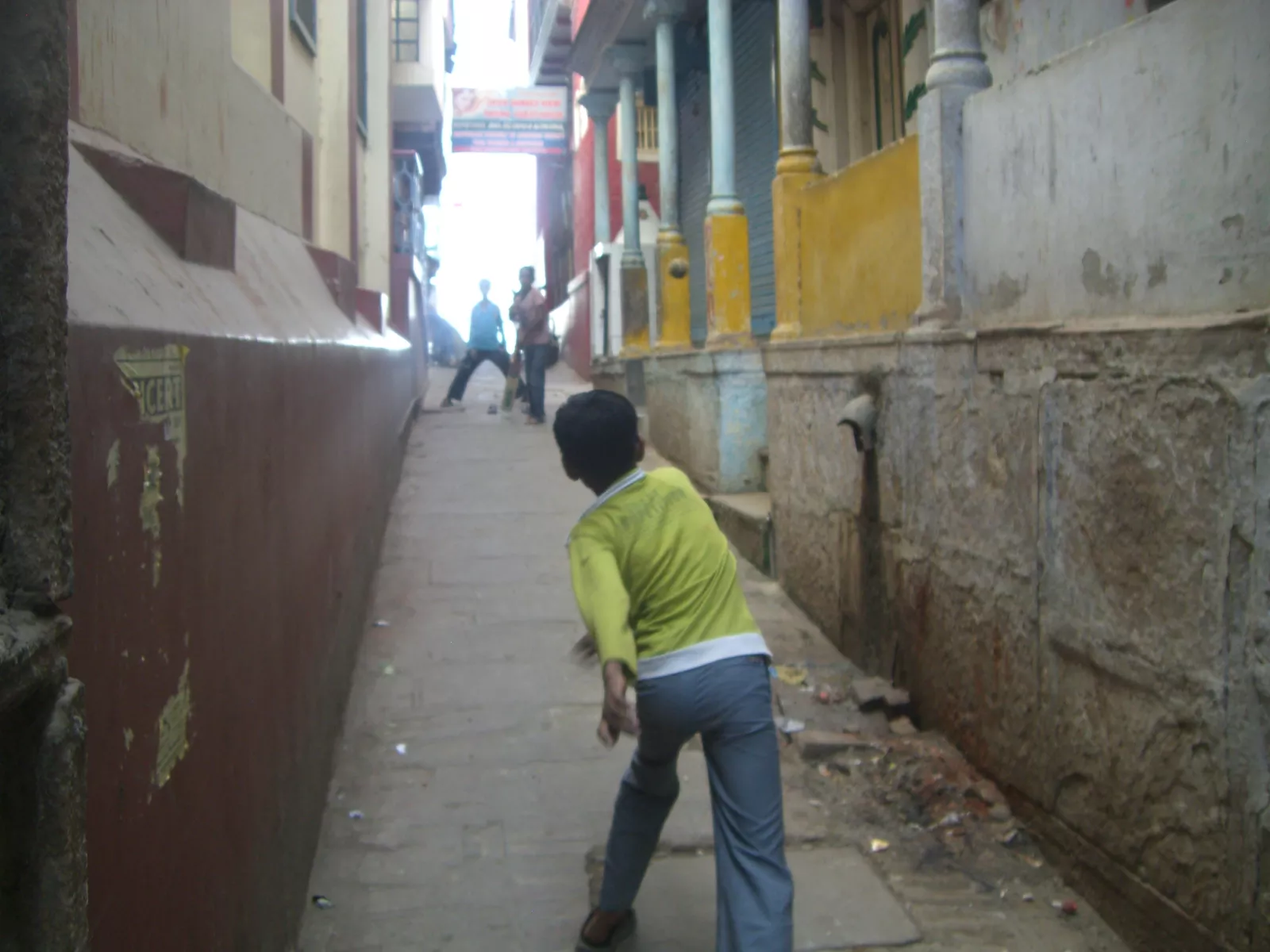 también en una calle de apenas 1 metro de ancho, había 3 niños jugando al criquet y pienso, joder, qué mal pero qué bien, lo siento, no sé explicarme…