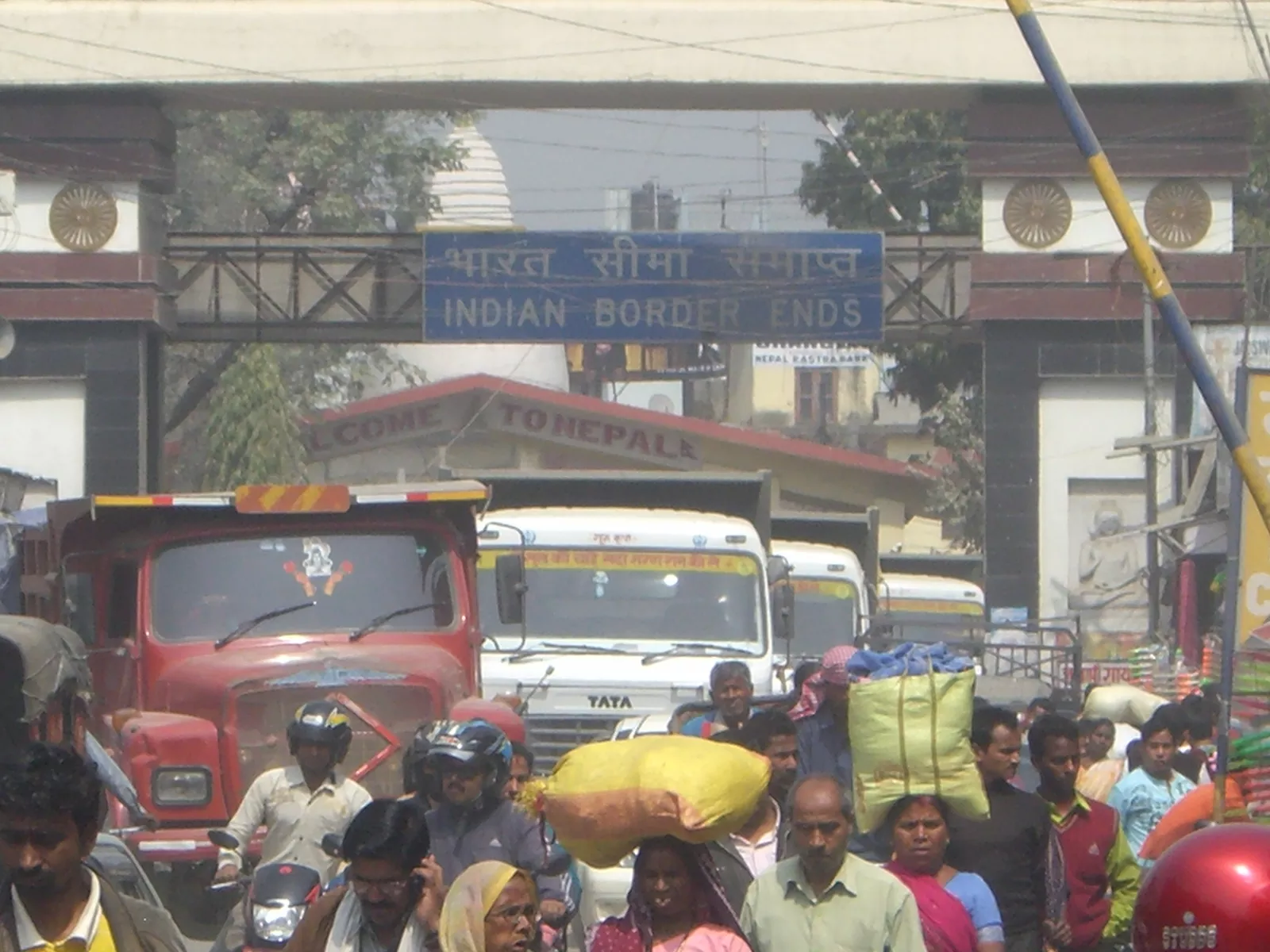 quiero en este orden, un café español, tres barritas de tomate, y un colchón decente. Después de llegar, alquilamos el primer coche que se fabricó en el mundo y vamos camino de la frontera, dicen que cruzarlo por carretera es bonito, ya veremos… no puedo más, después de tres horas de camino, llegamos a la frontera y empezamos tramite de visados, primero, el de la salida de india, papeleos y bien, cruzamos una pequeña puertecilla y ya estamos en Nepal pero no tenemos visado… y como ya entro en otro país, otra historia
