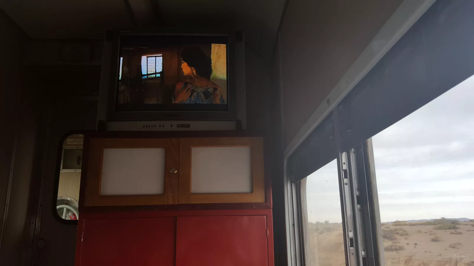 Pues si no estoy en el mejor asiento del tren, poco le faltará, vagón ejecutivo, somos 5 y estoy delante donde puedo estirar completamente los pies y el respaldo se baja bastante, de lujo y delante mía, la tv, viendo una de dioses, me ha molado, pero era muy moderna en comparación con el tren.