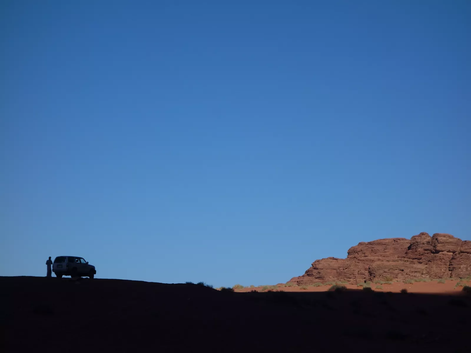 somos 7 turistas, una family francesa, dos japos y dos australianos de los que me hago rápidamente amigos, me reí bastante… hora de atardecer, escalo la montaña que tenemos detrás del campamento y me siento nuevamente a ver la puesta de sol, es increíble como la sombra se va comiendo todo el desierto, qué chulo, qué paz
